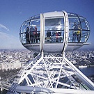 Le London Eye se dresse sur la rive sud de la Tamise, près du pont de Westminster. Pendant 30 minutes et grâce à cette roue géante de 135 mètres, jusqu’à 800 visiteurs jouissent simultanément d’une vue exceptionnelle sur Londres.