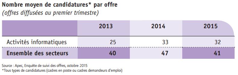 Source : Etude menée par l’Apec « Le marché de l’emploi cadre dans le secteur informatique «