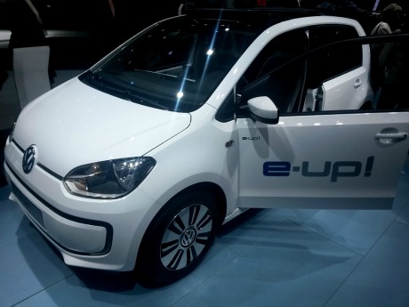Il s’agit de la première voiture électrique mise en vente par Volkswagen. Citadine de 4 places, sa batterie lithium-ion dispose d’une capacité de 18.7 kWh et autorise une autonomie d’environ 160 km. Son moteur de 60 kW lui assure une vitesse de pointe de 130 km/h. En vente depuis septembre 2013 à partir de 19 950 € TTC, bonus écologique de 6 300 € déduit.