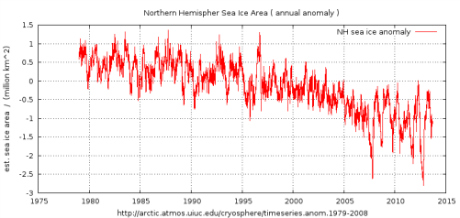 En 2007, la BBC, information reprise sans aucune réflexion par de nombreux médias francophones, faisait écho d’une étude prophétisant la disparition totale de la banquise d’été dès 2013. Cela ne s’est pas du tout produit, au contraire, on assiste depuis 2007 à une décélération du rythme du déclin de la banquise d’été, et le boom de 2013 est spectaculaire (+ 60% comparativement à 2012). Il était donc légitime que les journalistes anglais bien informés réagissent et ironisent. Il est regrettable que cela n’ait pas servi de leçon aux prophètes de malheur français qui croient bon exagérer systématiquement pour effrayer leurs lecteurs.