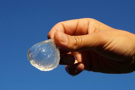 Ces sphères peuvent prendre plusieurs tailles. Elles ont de nombreux avantages par rapport au plastique : elles sont biodégradables (même comestibles !) et leur production ne coûterait que 2 centimes d’euros par unité. En pratique, cette sphère gélatineuse est constituée d’une double membrane qui enferme le liquide, comme la membrane d’un œuf protège le jaune. Pour boire, il suffit de la percer et de mettre sa bouche sur le trou. En bonus : on peut manger l’intégralité de l’emballage !