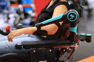 Le troisième, l’Orthopus Explorer, n’est pas un exosquelette puisqu’il n’est pas en contact avec le corps. Il s’agit d’un bras robotique posé sur le fauteuil roulant. Il possède six moteurs et une pince au bout, comme ceux que l’on retrouve dans l’industrie. « Il est destiné aux personnes avec une faible mobilité, mais qui pourront contrôler ce bras avec un joystick ou le menton par exemple », précise David Gouaillier. Ce prototype sera en vente en 2028.