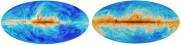 La mission Planck est dédiée à l’étude du rayonnement fossile, l’écho lumineux du Big-Bang. Les mesures, faites dans neuf bandes de fréquence, permettent de construire des cartes de la température du ciel mais aussi de sa polarisation, qui nous donne des informations supplémentaires à la fois sur l’Univers très jeune (âgé de 380 000 ans) et sur le champ magnétique de notre Galaxie.