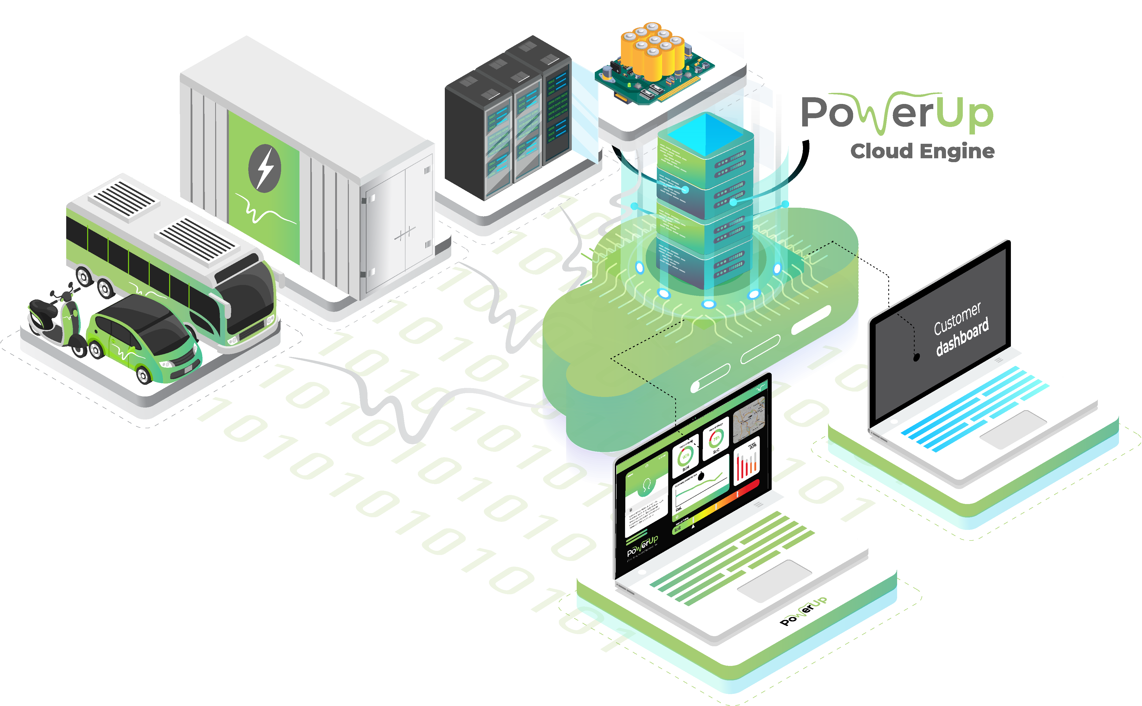 Née en avril 2017, PowerUp conçoit et commercialise des solutions de gestion et de supervision de batteries au lithium utilisées pour des installations de stockage d’énergies renouvelables, des flottes de véhicules électriques, ou encore des data centers. Sa technologie MAP (mesurer, agir, prédire) permet de mesurer l’état de santé des batteries, d’optimiser leur charge, mais aussi de prédire leur durée de vie.