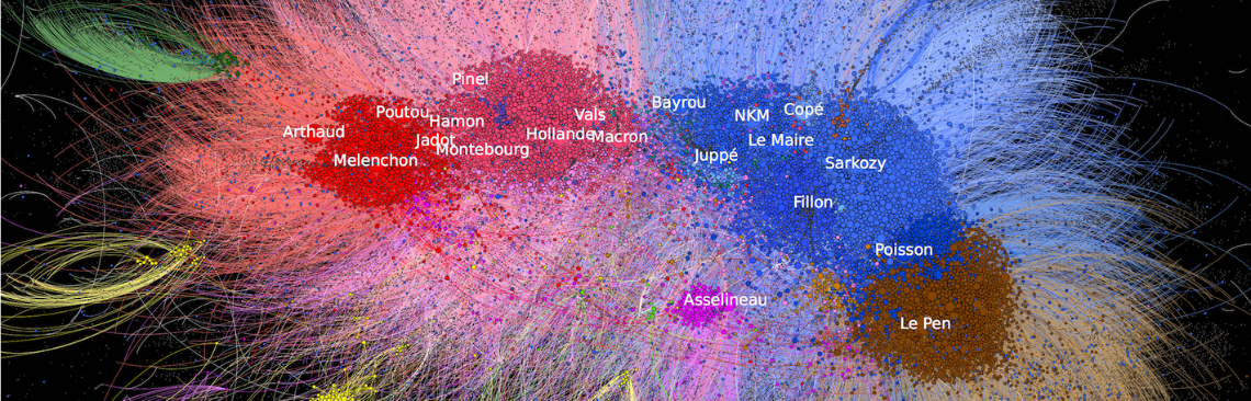 Comment traiter ces données et les transformer en connaissances utilisables ? Depuis août 2016, les chercheurs de l’Institut des systèmes complexes du CNRS et du Centre d’analyse et de mathématiques sociales (CNRS/EHESS) ont récolté près de 35 millions de tweets publiés par 3689 personnalités politiques (députés, maires, candidats), 25 millions de tweets de plus de 3000 comptes officiels de médias et journalistes et ont identifié 1,5 million de comptes d’utilisateurs uniques et anonymisés.