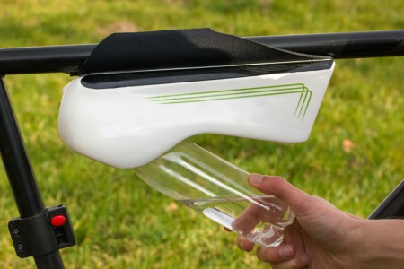 Le système imaginé consiste en un étui dissimulant des mini panneaux électriques. L’air ambiant pénètre dans Fontus à l’intérieur duquel il est refroidi, ce qui permet ensuite d’en prélever les particules d’eau. Les gouttelettes s’écoulent alors jusqu’au goulot d’une bouteille fixée en amont. Accroché sur un vélo, le système permettrait de produire 0.5L d’eau en 1 heure, dans des conditions optimales d’utilisation. D’après son concepteur, le prototype peut stocker 1 goutte d’eau par minute pour un air ambiant avec un taux d’humidité de 50% et une température supérieure à 20°C. Un filtre à l’entrée du système bloque les impuretés et autres poussières. En revanche, pour l’instant rien ne vient filtrer les polluants atmosphériques.