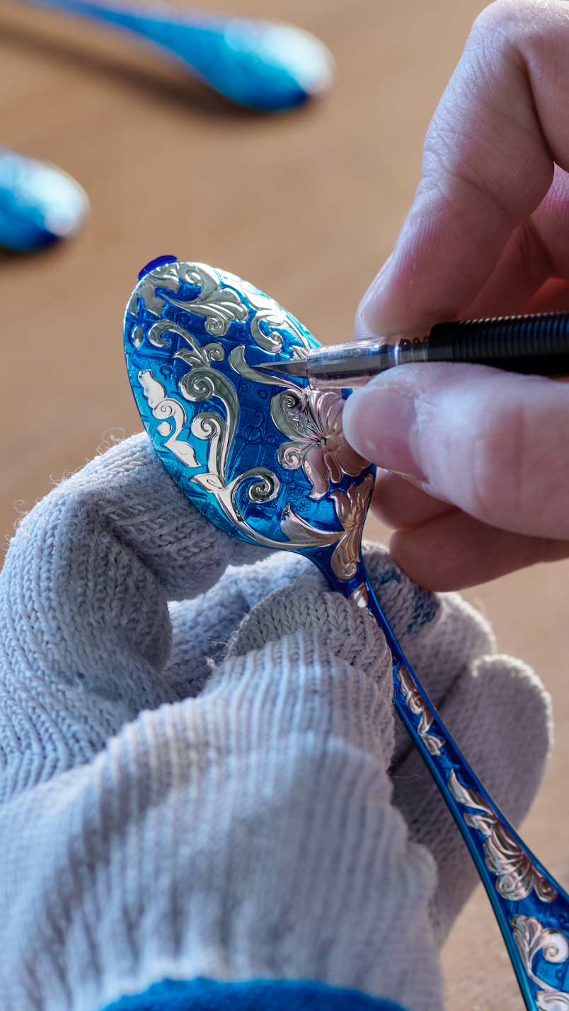 La formation diplômante fait partie des pistes de réflexion, puisqu’il n’existe pas aujourd’hui de diplôme d’orfèvre, et je pense que Christofle est la meilleure école pour apprendre ce métier. Aujourd’hui, notre urgence à ce niveau est d’assurer le bon passage de témoin dans les cinq années qui viennent, pour gérer les départs à venir, comme je vous l’expliquais tout à l’heure.