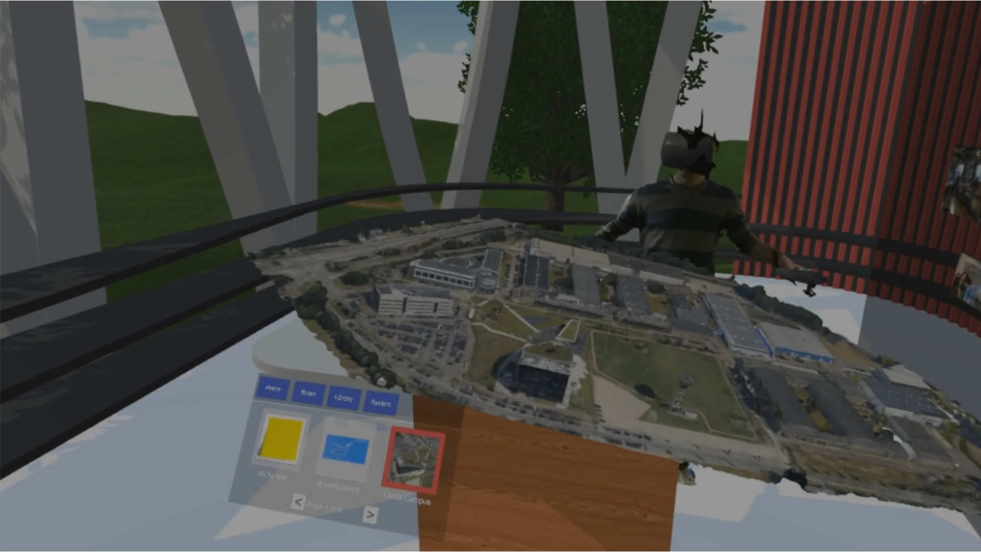 En ce qui concerne Mimesys, chaque participant est en pratique filmé – ou plutôt capturé – par une caméra 3D et porte un casque audio et un casque de RV/RA, grâce auquel il voit l’environnement de travail, réalisé en images de synthèse, et la «doublure virtuelle» de ses interlocuteurs. Manettes en main, tous ont la possibilité d’agir sur les plans, les photos et les documents, de les partager, de les agrandir, de les annoter à l’aide d’un stylo, de la même manière que sur un tableau blanc interactif. Les sensations et l’ergonomie générale sont impressionnantes.