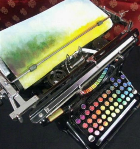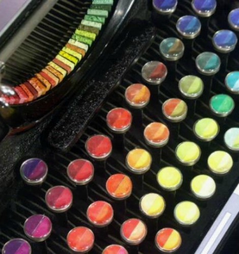 En bonus, voici la fantastique invention de Tyree Callahan, un artiste-peintre américain qui, en modifiant une vieille machine à écrire Underwood 1937, – appareil mythique de l’âge d’or des écrivains américains –, l’a transformée en une « machine à écrire chromatique », ou une machine à « écrire des images ». Pour cela, il lui aura suffi de remplacer les touches et les lettres par des tampons de couleur et des dégradés, lui permettant d’écrire ainsi une toute autre histoire…