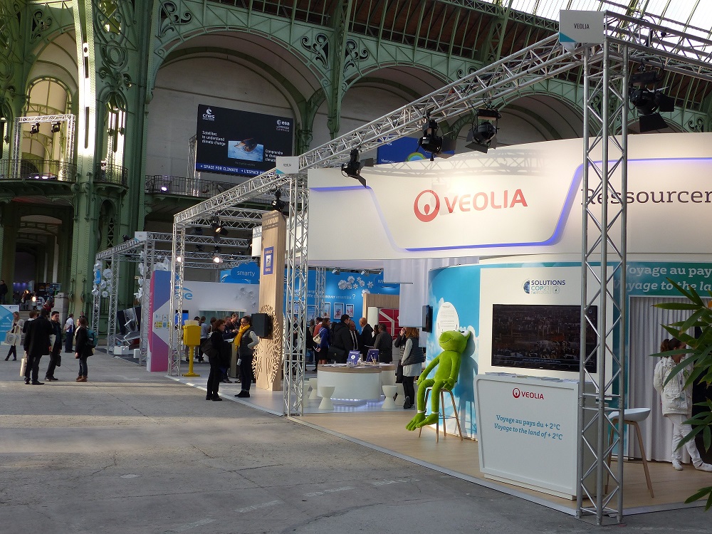 Veolia propose une mini-exposition « voyage au pays des 2°C » présentant ses solutions pour atténuer le réchauffement climatique.
