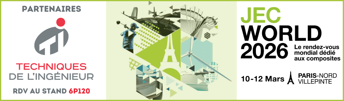 Nous sommes heureux de renouveler notre partenariat avec JEC World pour l’édition 2026 dédiée aux matériaux composites et à leurs applications. Retrouvez-nous sur le stand 6P120 les mardi 10, mercredi 11 et jeudi 12 mars au Parc des expositions Paris Nord Villepinte.