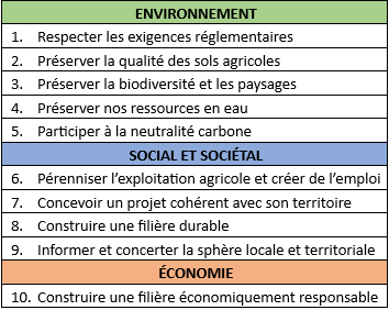 Les recommandations qui sont proposées ont pour but de permettre un développement harmonieux de la filière avec une prise en compte des préoccupations environnementales, sociales, sociétales et économiques de la RSE pour chaque projet.