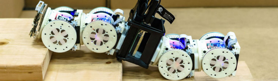 Composé de différents éléments cubiques équipés de roues et connectés les uns aux autres grâce à des aimants électro-permanents, le robot se reconfigure automatiquement et s’adapte à un environnement inconnu. De multiples caméras placées sur un des modules et un petit ordinateur permettent de collecter les données puis un algorithme caractérise l’environnement : plat, escalier, tunnel ou hauteur. Enfin, l’ordinateur modifie la structure des modules via des signaux WiFi et le robot prend différentes formes -scorpion, serpent, voiture ou bras- selon l’environnement et la tâche à réaliser.