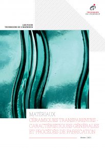 Ce livre blanc est consacré aux céramiques transparentes. Cette famille de céramiques techniques fonctionnelles allie les propriétés optiques des monocristaux et la flexibilité des procédés céramiques. Toutefois, leur transparence peut être rapidement altérée par des défauts engendrant des phénomènes de diffusion ou d’absorption de la lumière. Le lien entre leurs propriétés optiques (i.e. leur transparence) et leur composition, (micro-)structure est décrit. Les différentes étapes clés du procédé à maîtriser pour leur fabrication sont détaillées et discutées dans ce livre blanc : la synthèse des poudres, la mise en forme et le traitement thermique final de densification (frittage).