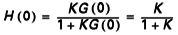 Lorsque la branche directe ne comporte pas d’intégration, la fonction de transfert en boucle ouverte KG (p ), dépourvue de facteur 1/p, possède pour p = 0 la valeur finie K. Donc le gain statique du système, valeur de sa fonction de transfert H (p ) [1] à la fréquence nulle, n’est plus égal à 1, mais à :
