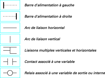 Les composants graphiques élémentaires d’un diagramme LD sont :