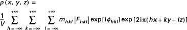 Le calcul des phases de chaque réflexion étant résolu par l’une des méthodes précédentes, il est possible de calculer une première carte de densité électronique, en pondérant chaque réflexion par la qualité estimée de l’information de phase (figure de mérite). La densité électronique ρ (x, y, z ) en un point de coordonnées relatives (x, y, z ) dans la maille cristalline s’écrit :