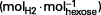 Les rendements concernent les rendements de conversion produit/substrat et produit/produit. Ainsi, suivant le type de substrat, les rendements sont exprimés en mole d'hydrogène par mole d'hexose consommé ou introduit