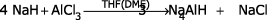 Cette réaction est suivie par l'addition de NaH solide en suspension dans le THF sur l'hydrure d'aluminium en solution :