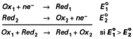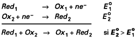 soit l’oxydation de Red 1 , par action du réactif Ox 2 , dans des réactions inverses aux précédentes :