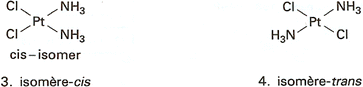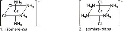 Pour un polyèdre de coordination donné, une diastéréoisomérie apparaît lorsque les ligands ne sont pas tous semblables, comme dans le cas des isomères cis et trans. Les dénominations fac- et mer- sont déconseillées à cause de leur manque de généralité ; il est préférable d’utiliser le code de configuration comme affixe ajouté au nom 4.3. La chiralité dans les structures énantiomères se décrit bien à l’aide des symboles de chiralité 6.