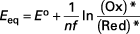 Le potentiel d'équilibre Eeq de l'électrode, siège de la réaction , est donné par la relation de Nernst :