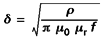 L’épaisseur d’une tôle pour circuit magnétique de machine alimentée par convertisseur doit être choisie en tenant compte de sa fréquence de travail. On établit, en effet, à partir des équations de Maxwell, que la pénétration du champ magnétique obéit à une relation simple, si l’on suppose linéaire le comportement du matériau. L’épaisseur de peau δ peut être calculée à partir de l’expression :