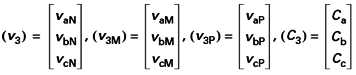 On définit les vecteurs des tensions triphasées et le vecteur des variables de commande que nous considérons maintenant comme des variables algébriques, valant 0 ou 1 :