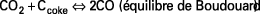 Rôle chimique : dans la zone supérieure, le coke réagit avec le gaz carbonique selon la réaction :