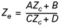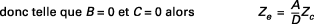 compte tenu de ce que V2 = – ZcΙ2, l’impédance Ze = V1/Ι1 du dipôle de bornes P, M (composé de Q chargé par Zc) a pour expression :