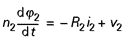 Le deuxième enroulement, appelé secondaire, est traversé par un flux moyen par spire ϕ 2 dont la variation crée une force électromotrice n2 dϕ 2 / dt. En appelant R2 la résistance de l’enroulement secondaire, on obtient l’équation :