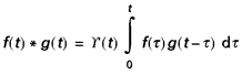 Soit f (t) et g(t) deux fonctions de la variable réelle t, absolument intégrales sur tout intervalle fini. On appelle convolution de f par g la fonction y(t) définie par l’intégrale (si elle existe) :