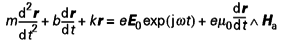 En remplaçant dans l’équation [1] r par r0 exp (jωt) avec r0 = x ex + y ey et E0 par Ex ex + Ey ey + Ez ez (ex, ey, ez vecteurs unitaires du système d’axes orthonormé x, y, z), on obtient un système d’équations où les expressions donnant x et y sont couplées par un terme correspondant à la force de Lorentz. Ce résultat s’explique simplement : en présence d’un champ électrique par exemple suivant l’axe y, les électrons se déplacent...