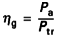 Au premier rang, cette très importante caractéristique concrétise le rapport de la puissance délivrée à l’antenne (Pa) et de la puissance totale consommée au réseau (Ptr). Le rendement global ηg incorpore l’ensemble des consommations, les ventilateurs, les pompes hydrauliques et toutes les pertes, y compris les pertes des transformateurs d’alimentation en énergie :