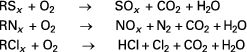 Si la matière organique comprend des hétéroatomes (azote, soufre, chlore…), les réactions (simplifiées dans les équations suivantes) conduisent à la production de composés multiples à émissions réglementées :