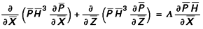 Comme dans le cas de la lubrification hydrodynamique [85], le patin est constitué de deux surfaces non parallèles. La face inférieure, horizontale, animée d’une vitesse de translation U et la face supérieure qui forme généralement un convergent avec l’horizontale (figure 31). La plaque inférieure entraîne le gaz dans l’espace convergent, ce qui produit un champ de pression capable de supporter une charge. L’épaisseur minimale de gaz h 2 est très petite (de l’ordre de 10 µm) devant la longueur B du palier (de l’ordre de 10 à 100 mm). L’équation de Reynolds qui permet de calculer le champ de pression se déduit de l’équation générale [1] et s’écrit en coordonnées adimensionnelles :