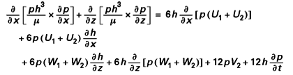 L’équation de Reynolds dans le cas de la lubrification aérodynamique (fluide compressible) prend alors la forme suivante :
