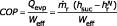 Ainsi, l'enthalpie du frigorigène à l'entrée du condenseur, le débit du frigorigène circulant dans l'installation, la puissance absorbée par le compresseur et le coefficient de performance (COP ) de la machine peuvent être calculés respectivement par les équations suivantes :