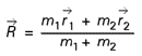 les positions respectives des particules m1 et m2 dans (L). La position du centre de masse des deux particules (barycentre) est définie par la relation :