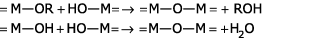 Le procédé de synthèse se décompose en deux principales étapes que sont l'hydrolyse et la condensation de précurseurs métalliques permettant de former un réseau covalent. L'étape d'hydrolyse se schématise par la réaction :