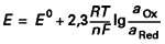 Ox + n e – « Redadopte, dans le cas d’un système réversible et à courant nul, un potentiel d’équilibre qui résulte des courants d’échange d’électrons entre l’oxydant et le réducteur par l’intermédiaire du conducteur électronique. L’expression de ce potentiel d’équilibre E est donnée par la relation de Nernst :
