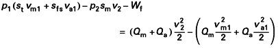 W f étant la puissance dissipée entre les sections 1 et 2 d’entrée et de sortie du mélangeur par les forces tant intérieures qu’extérieures agissant sur le flux.