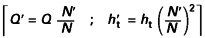 Nous avons vu en Pompes rotodynamiques- Fonctionnement comment varie la courbe caractéristique théorique h t (Q ) d’une pompe lorsque l’on change sa vitesse de rotation. Un point [Q ; h t] à la vitesse N a pour homologue, à la vitesse N ’, un point :