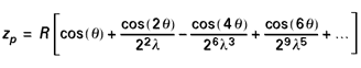 Le déplacement du piston est ainsi exprimé sous la forme d’une série de Fourier. Le rapport λ est en pratique supérieur à 3, ce qui permet de conserver pour chaque harmonique de la série le terme en 1 / λ prédominant (de puissance minimale).