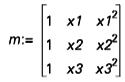 m:=matrix(3,3,(i,j)->x.i^(j–1));