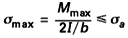 en assimilant la palplanche à une poutre dont la section a pour inertie I, pour épaisseur b, et dans laquelle le moment maximal est Mmax .