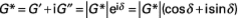 Nous ne considérerons dans la suite que les mesures effectuées sous contrainte de cisaillement, puisque ce mode de sollicitation est commun aux liquides et aux solides. Le module élastique complexe associé est noté G = τ/γ (en Pa) ; sa composante réelle est le module élastique (ou module de conservation) G′, et sa composante imaginaire est le module visqueux (ou module de perte) G″ :