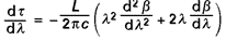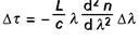 Elle est due à la variation de l’indice de réfraction des verres composant la fibre. En propagation libre dans un espace homogène et isotrope d’indice n (X), la différence de temps de propagation Δτ sur une longueur L entre deux ondes planes de longueurs d’onde séparées de Δλ est :