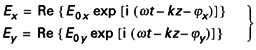 où ϕ x et ϕ y sont deux termes de phase et où Re désigne la partie réelle de la grandeur entre accolades.