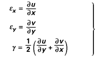 Pour appliquer le phénomène de moiré en extensométrie, il suffit de prendre la surface de la pièce à étudier comme support d’une trame, formée de deux réseaux orthogonaux entre eux, et de comparer successivement chacun de ces réseaux avec le réseau témoin correspondant. On obtient ainsi, dans toute l’étendue couverte, les lignes de niveau des déplacements u et v dans les deux directions orthogonales Ox et Oy correspondant à la trame : graphiquement (figure 17) ou par dépouillement automatique, on en déduit les dilatations normales ε et le glissement γ , en se fondant sur les formules de définition :